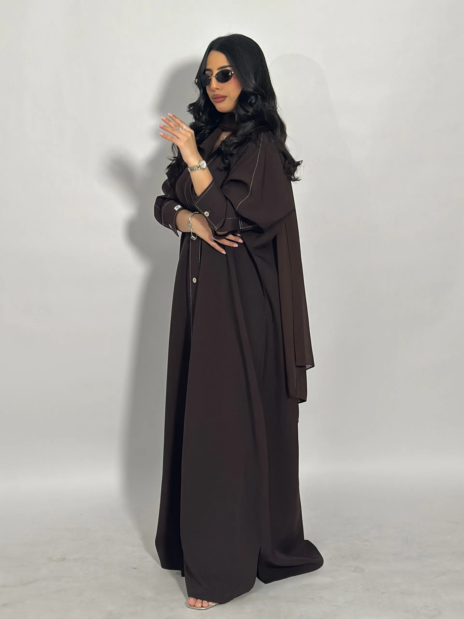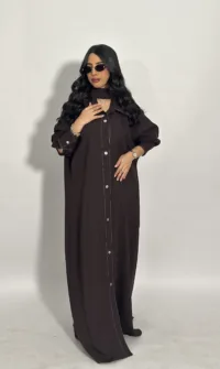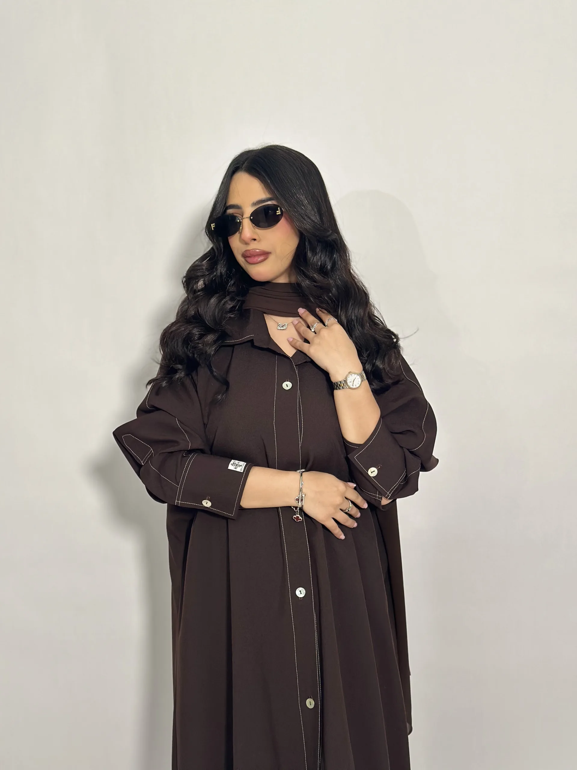 عبايه رسميه للدوام ويوميه مطرزه بالخيط الابيض