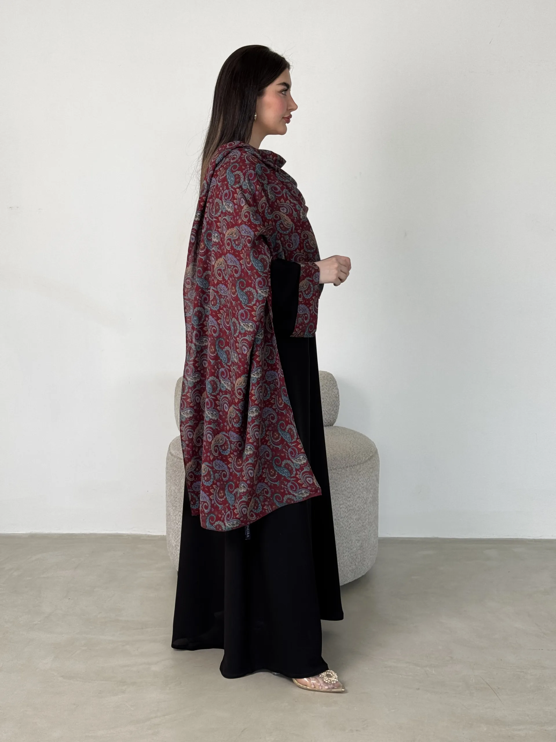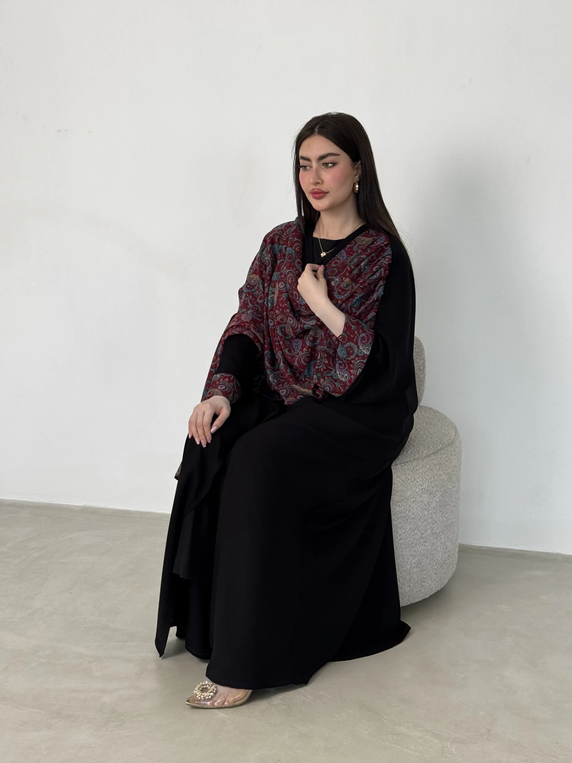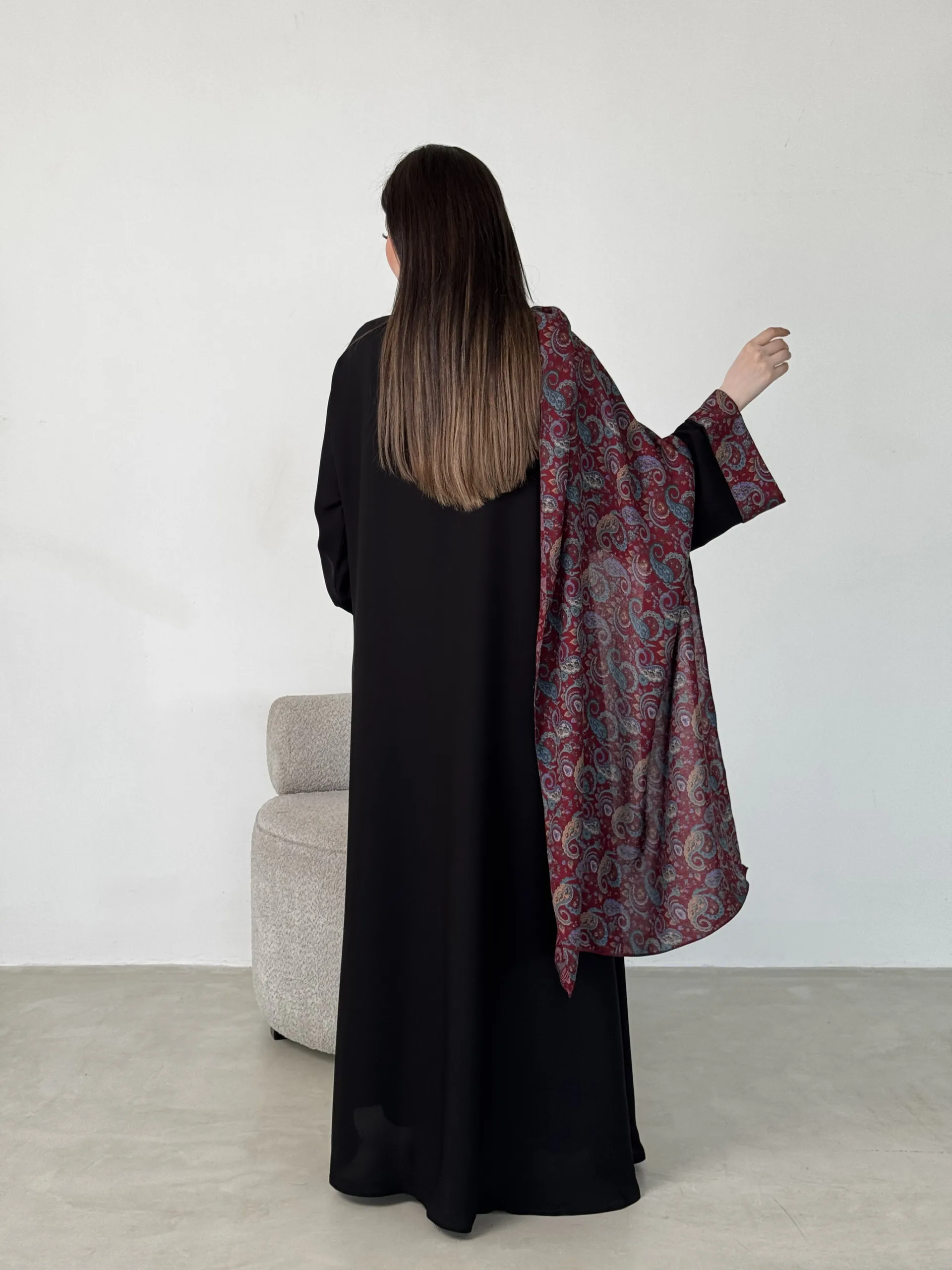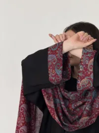 فستان ميدي مع أزرار من نفس القماش و إضافة ناعمة من التور في اليد