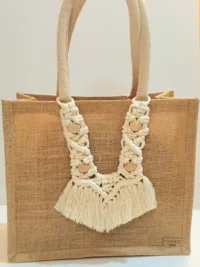 This handcrafted jute tote is where function meets artistry. Designed with soft, flowing macrame details and a sturdy, earthy base, it’s the perfect everyday bag for those who appreciate texture, simplicity, and slow-made beauty. Whether you’re heading to a café, the beach, office, or the farmers market, this tote adds a thoughtful, handmade touch to your look.